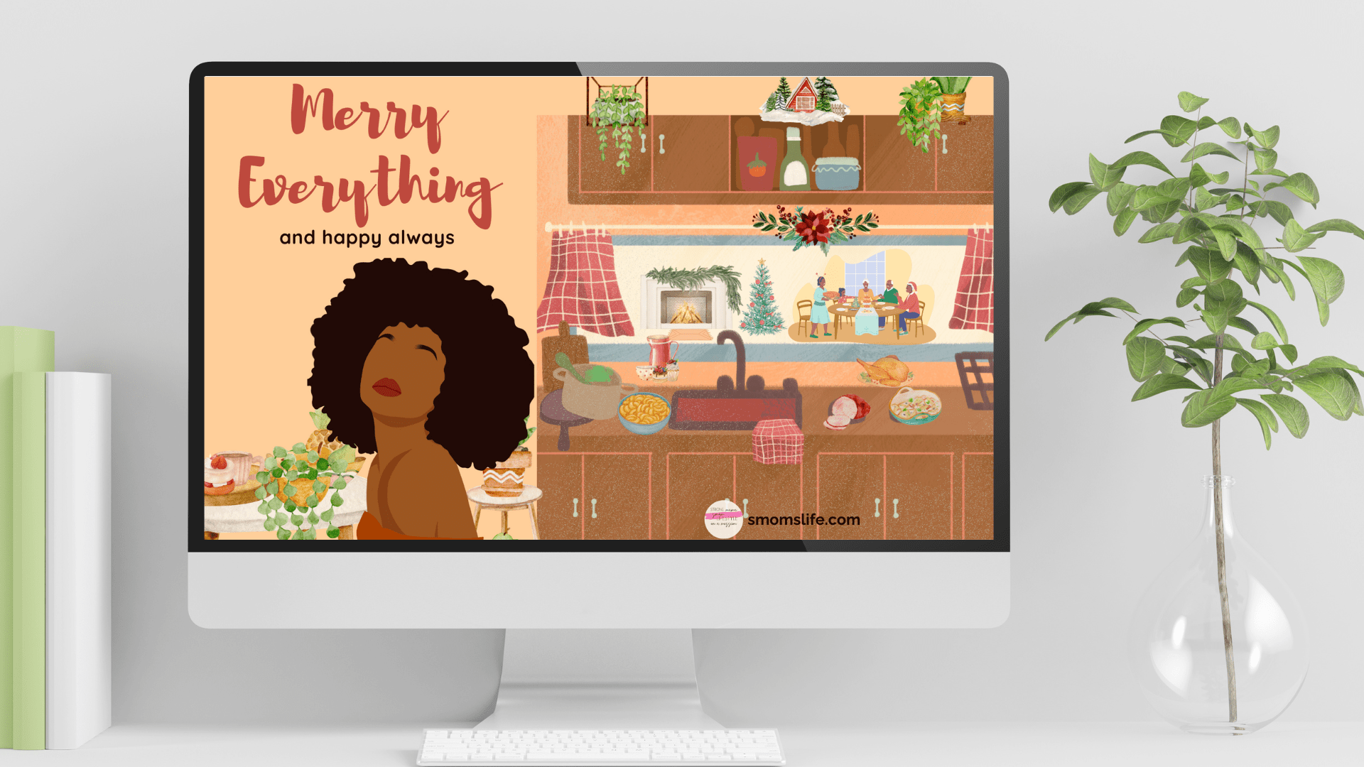 Transform your laptop or desktop into a digital space for a celebration of joy and togetherness with our Melanin Holiday Boho Wallpaper laptop download, spreading the message of "Merry Everything and Happy Always" this holiday season. Immerse yourself in the nostalgic charm of Christmas as you revel in the warmth of festive colors, the comforting glow of a fireplace, and the delightful aroma of a holiday feast.