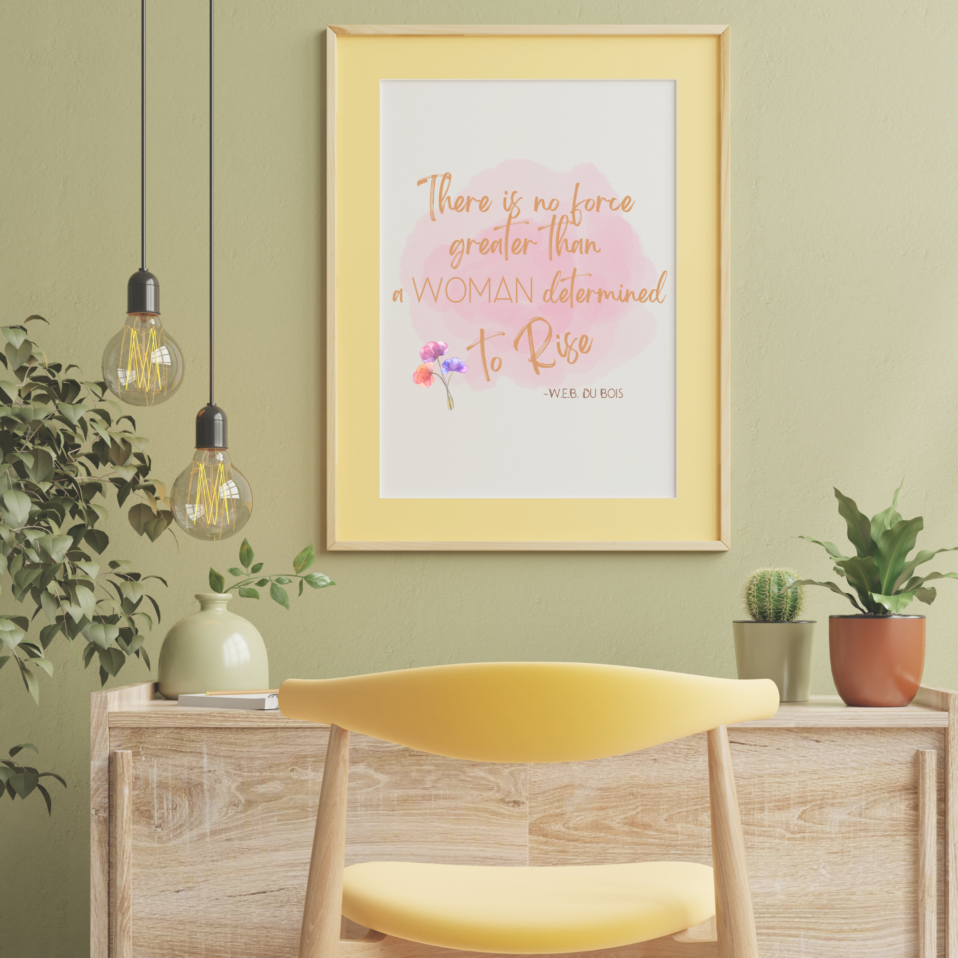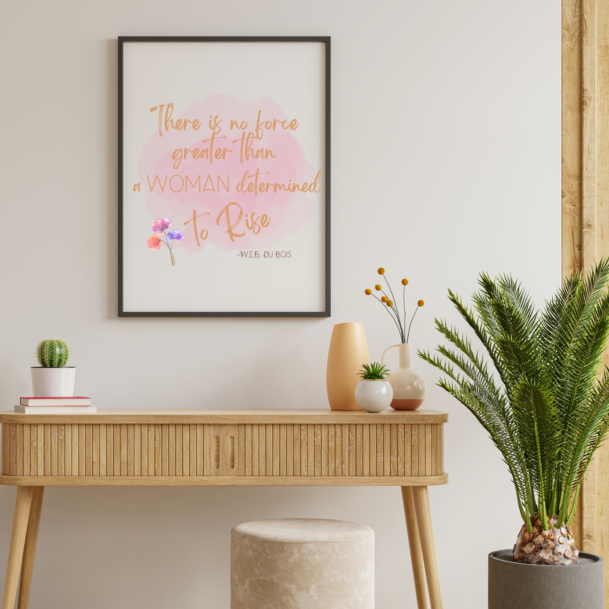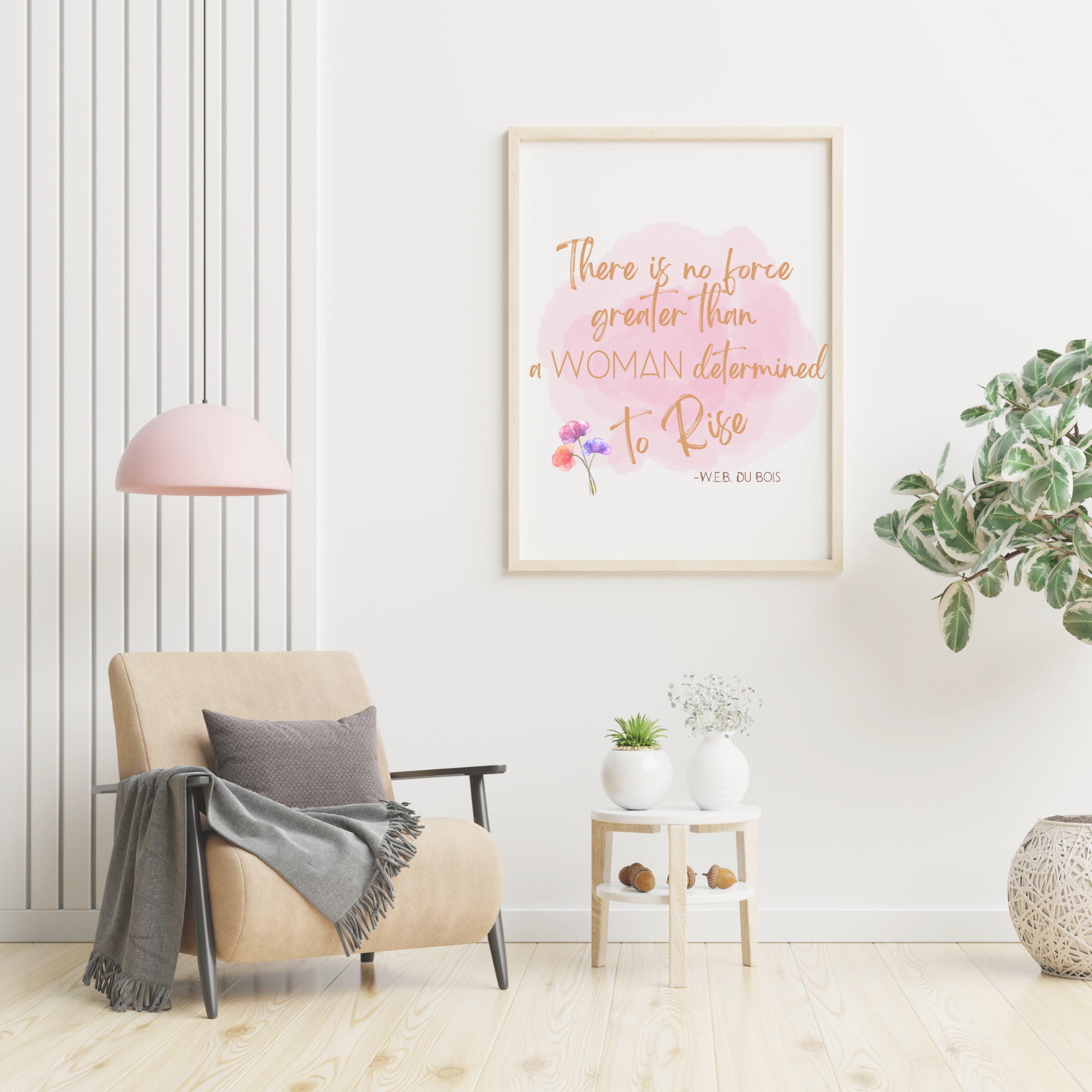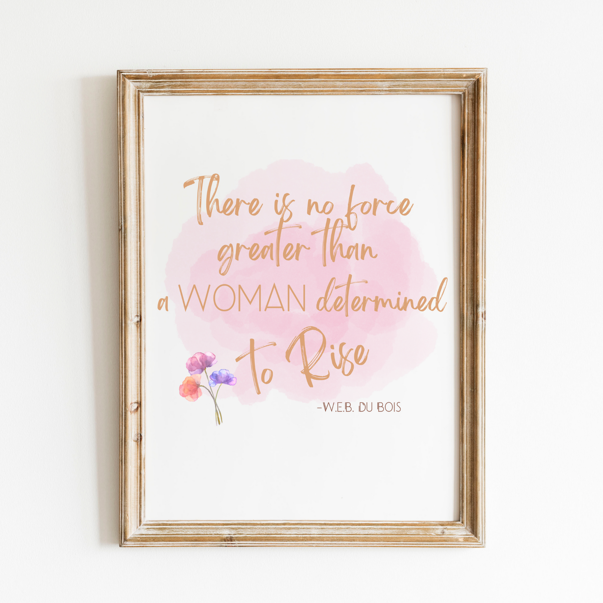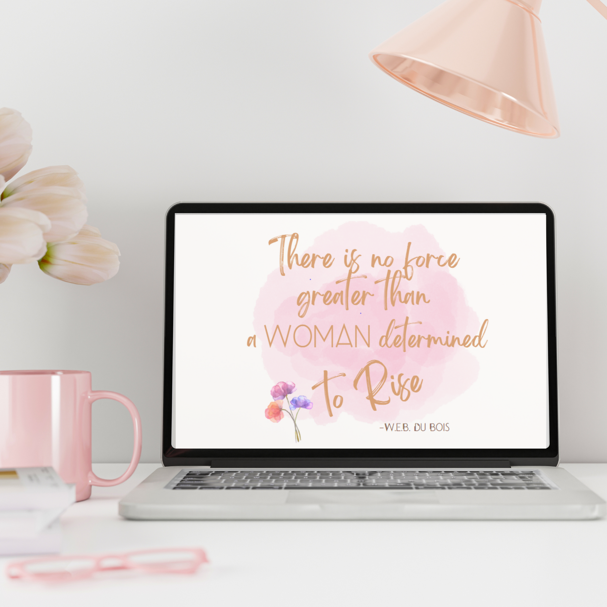Decorate your woman cave, office, college dorm room, and space with this positive self care affirmation and quote. This digital download has a feminine watercolor design featuring a quote from W.E.B. DuBois- There is No force Greater than a Woman. Use this printable self care affirmation bundle to help you get things done and stay empowered! This pack also includes the boho desktop wallpaper download as well.