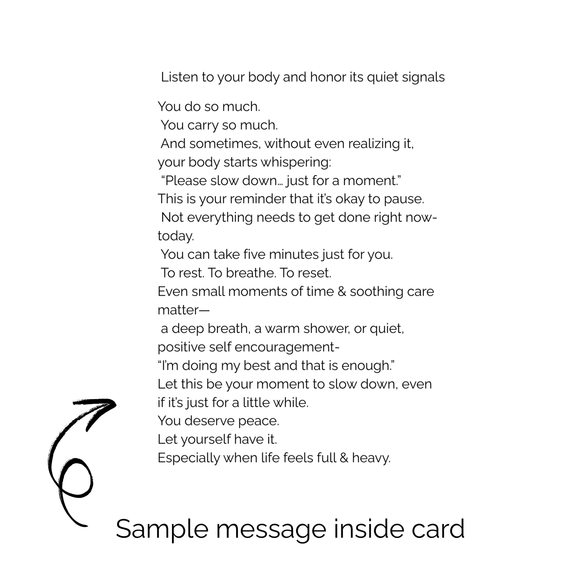 Whether you pass them along one by one to offer someone else comfort or tuck them away for the days you need a little peace after a long day, this box is a quiet reminder: you're allowed to slow down, pause, and feel cared for.