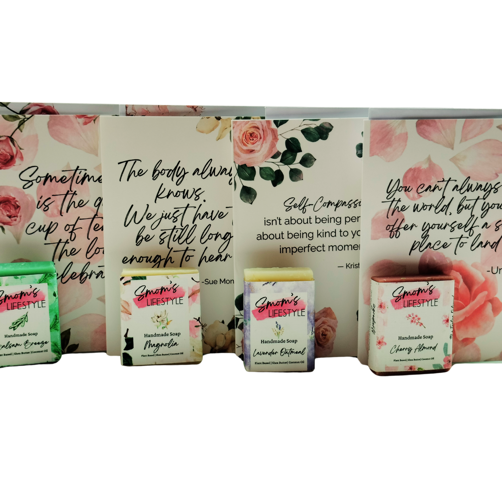 This thoughtful gift box from our Roses & Oats Collection includes 4 encouraging cards with 4 matching decorative envelopes. Each card with a soothing message—and 4 mini soaps made with gentle, skin-loving ingredients. Designed for anyone carrying a full plate, it’s a ready-to-gift box of calm that’s perfect for sharing with friends or keeping for yourself.